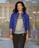 Вот что значит модные линии! Куртка прямого, чуть расширенного силуэта, с воротником стойкой выглядит стильно и женственно одновременно. Спущенная линия плеча добавляет ощущения комфорта. Совет – носите эту куртку с узкими брюками, такой комплект создаст впечатление очень длинных ног. Силуэт: А - образный. Вырез горловины: воротник-стойка. Застежка на кнопки и декорирована тесьмой с пришивными камнями. Рукав 3/4. Длина по спинке 55 см.