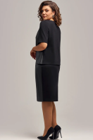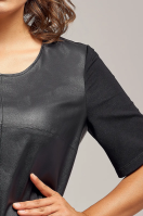 Комплект женский двухпредметный, состоящий из джемпера и юбки. Джемпер полуприлегающего силуэта. Перед выполнен из эко-кожи на замшевой основе. Рукава и спинка из мягкого трикотажного полотна. Вырез горловины круглый. Рукава втачные. Перед юбки выполнен из эко-кожи, спинка выполнена из мягкого трикотажного полотна. По бокам пояса резинка для лучшего прилегания. Застежка на петлю и пуговицу.