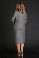 Комплект женский из трех предметов: жакет, блуза и юбка. Жакет прямого силуэта с двумя нагрудными вытачками. Центральная застежка на 3 пуговицы и 3 обметанных петли. По переду жакета расположены карманы. По спинке средний шов. Вырез горловины V-образной формы с декоративными разрезами. Рукава втачные двухшовные, длиной 3/4. Юбка прямая, на поясе, на подкладке. По спинке юбка со средним швом, в котором расположена застежка-молния и разрез. Блуза из легкой ткани, без рукавов. В верхней части кокетка, переходящая с полочки на спинку. Длина юбки 72-74 см.
