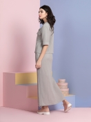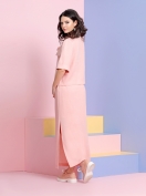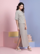 Предлагаем великолепный летний костюм с длинной юбкой. Такая юбка подчеркнет вашу женственность, поможет скрыть некоторые недостатки ног. Несмотря на длину, материал не позволит вам страдать от жары.