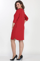 Платье прямого силуэта с круглым вырезом горловины по спинке и V-образным по переду. Перед с планкой по центру из искусственной кожи. В верху планки металлическая тесьма-молния. Спинка с планкой по центру. Низ платья фигурный, в боковых швах обработаны карманы.