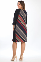 Платье женское, прямого силуэта, из трикотажного материала. С круглым вырезом горловины. Рукава реглан с цельнокроенными отложными манжетами. Деталь переда с асимметричной вставкой, заканчивающейся разрезом, нагрудными вытачками, складками и отделочной деталью с пуговицами. Спинка со средним швом, в верхней части которого обработана потайная застежка на тесьму - молнию и талиевыми вытачками.