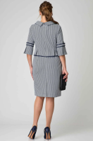 Платье женское нарядно-повседневное, полуприлегающего силуэта из плательной ткани. Рукав ¾, на манжете с бантовой складкой и патой с имитацией банта. V-образная горловина с отложным воротником. Платье на подкладке, с имитацией юбки и блузки. Верх платья по переду и по спинке со складками и окантованным низом. По центральному шву переда две отделочные пуговицы. Юбка платья классическая, зауженная к низу. По задней части в среднем шве шлица.