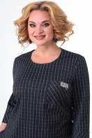 Красота в простоте - можно так охарактеризовать данную модель. Классическое платье прямого силуэта с круглым вырезом. Платье выполнено из трикотажного полотна в ненавязчивую клетку. Универсальное и практичное платье длиной ниже колена. Спинка платья со швом и талиевыми вытачками. На переде платья есть нагрудные вытачки, а в верхней левой части - настроченный карман. Втачной, двухшовный рукав длиной ¾ по низу декорирован вставкой в виде манжета. В боковых швах платья расположены карманы. Комфортная модель для работы и просто для повседневного применения.