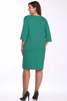 Платье женское, прямого силуэта, из трикотажного полотна, с круглым вырезом горловины, спущенной линией плеча, рубашечными рукавами, в одном из которых обработана застежка на декоративную тесьму молнию. Перед и спинка с кокеткой и средним швом. Карманы с молнией по переду.