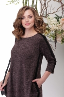 Платье А-образного силуэта выполнено из мягкого трикотажа средней плотности, простой крой и комфортность изделия сделают его незаменимым. Прекрасно дополняется различными аксессуарами и сочетается с разной по стилю обувью. Боковые швы, а также центральная часть рукава от горловины украшены контрастной черной тесьмой. В боковых швах карманы. Сзади от горловины декоративная молния облегчающая одевание платья. Длина по спинке 95см., длина рукава 54см.
