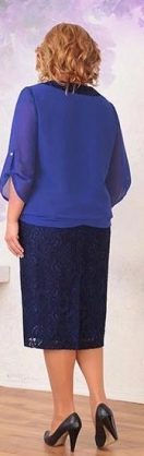 Нарядное платье из шифона и гипюра.Платье выполнено на трикотажной подкладке, верхняя часть - из шифона,нижняя из гипюра, поставленного на шифон. Длина платья 111см для 56-60 и 113см для 62-66. Рукав свободный 3/4 с патой на стеклянной пуговке.