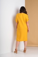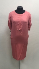 Платье женское, прямого силуэта, застежка ввиде планки, внутри застегивается на петли и пуговицы. На переде располагаются нагрудные вытачки. По низу планки притачано полукольцо. Спинка не разрезная, без вытачек. Горловина переда и спинки обработана бейкой и обтачкой. От бейки настрочен пагон на плечо и переходит на рукав, по низу притачаны два полукольца. Рукав рубашечный, одношовный, втачной, по центру низа притачана пата, продевается в полукольца погона. Боковые карманы, по переду прострочена отделочная строчка, по входу в карман, ввиде прямоугольника. Горловина обработана обтачкой. Низ окантован косой бейкой, закругленный, спинка длиннее переда, с прогибом по боковым швам.